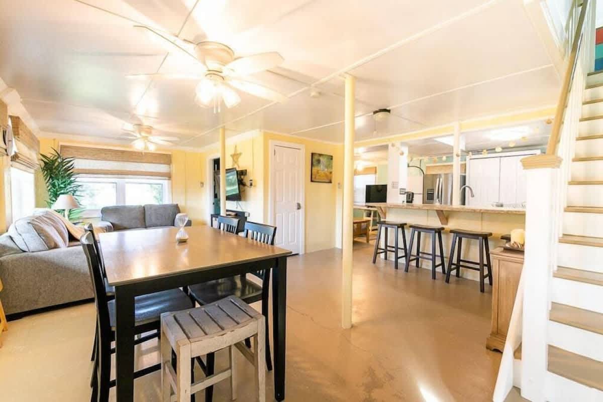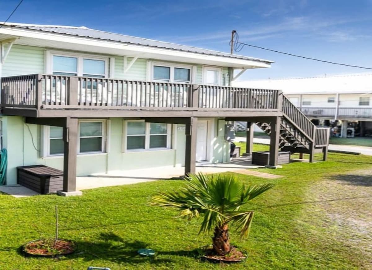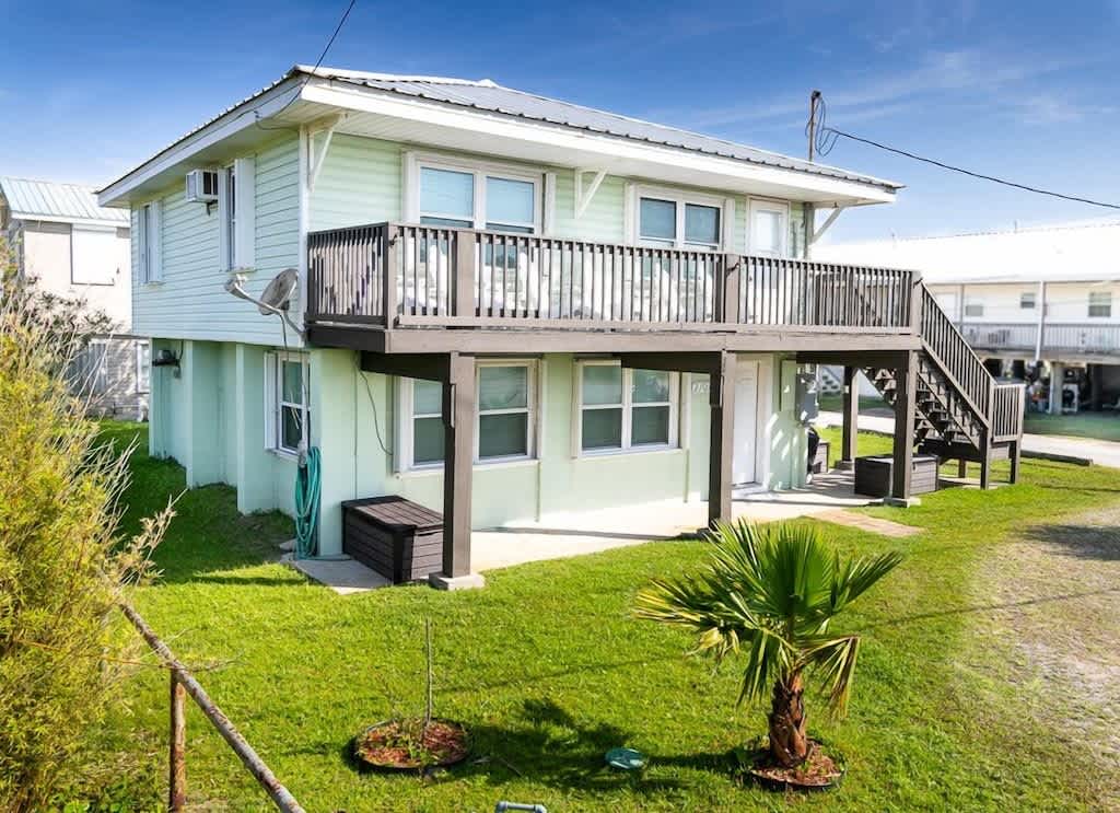 Great Camp in a great location, across from the beach with a gulf view from the upper deck. Three bedrooms and three bath camp. We have a Boiling Pot & charcoal BBQ Pit. Fully stocked kitchen with a stove and fridge. We have a separate laundry room, a pantry, and an extra fridge. It's right across from the beach public access with an upstairs deck facing the water.